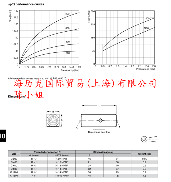 9C1600S派克液壓單向閥C系列技術(shù)參數(shù):